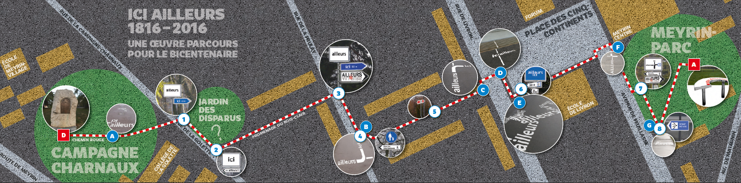 œuvre-parcours pérenne commémorant le bicentenaire du rattachement de Meyrin à la Suisse.